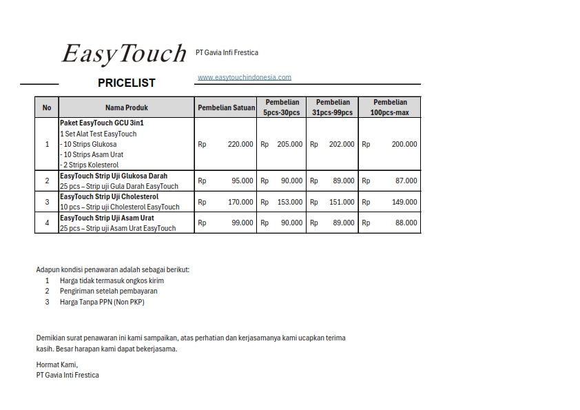 Penawaran Harga Alat Kesehatan – Easytouch